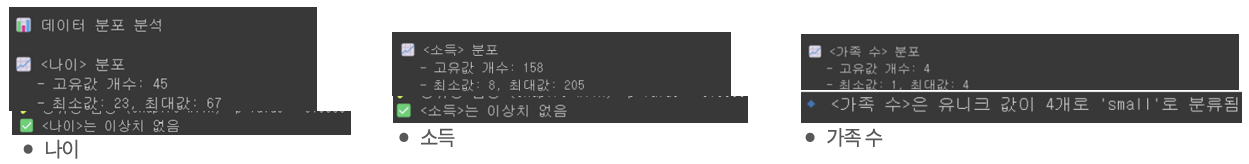 - ๋ถ์ ๋ฐ์ดํฐ๋ ๋์ด, ์๋, ๊ฐ์กฑ์, ์ ์ฉ๋์ถ์ฌ๋ถ ์ปฌ๋ผ์ผ๋ก ์ด๋ฃจ์ด์ง