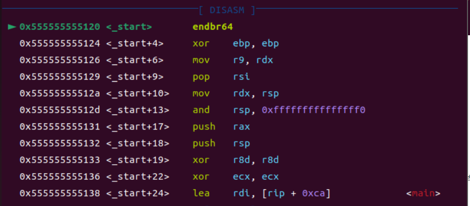 ์ง์ ์ ๋ถํฐ ํ๋ก๊ทธ๋จ์ ๋ถ์ํ ์ ์๊ฒ ํด์ค๋ค. DISASM ์์ญ์ ํ์ดํ(โบ)๊ฐ ๊ฐ๋ฆฌํค๋ ์ฃผ์๋ ํ์ฌ rip์ ๊ฐ์ด๋ค.
